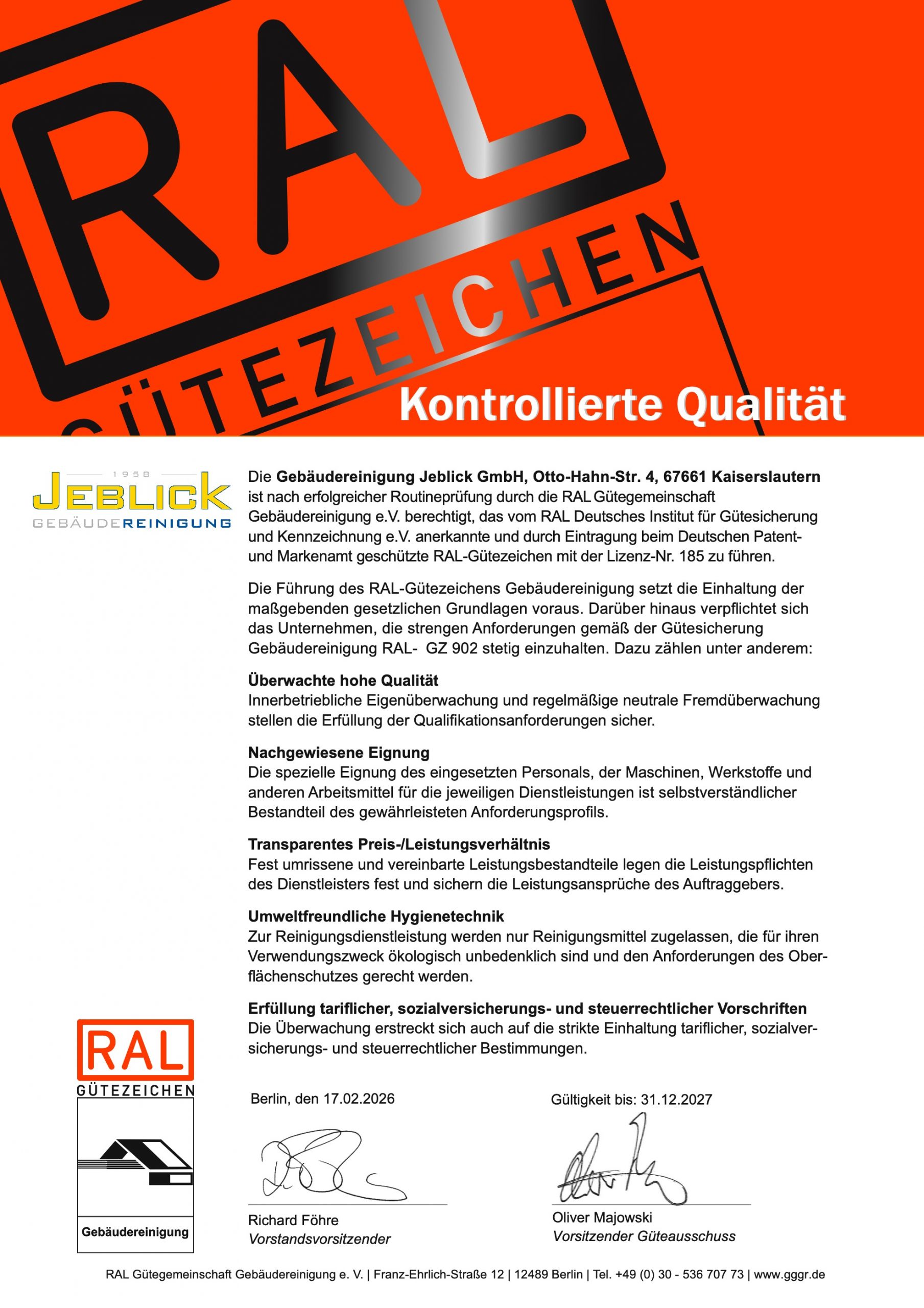 Jedes Unternehmen, das gewerblich Reinigungsdienstleistungen anbietet, wird durch die Allgemeinverbindlichkeit verpflichtet, unabhängig von einer Mitgliedschaft im Tarifträgerverband und unabhängig von seinem Sitz im In- oder Ausland, die allgemeinverbindlichen Branchenmindestlöhne zu zahlen. Die Einhaltung der verbindlichen Löhne wird durch die Finanzkontrolle Schwarzarbeit (Zoll) geprüft. Ein Verstoß hat u.a. sehr hohe Bußgelder und ggfls. sogar Haftstrafen zur Folge.